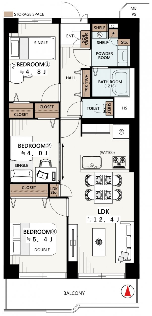 | 専有面積 | 61.60㎡ | バルコニー面積 | 7.60㎡ |