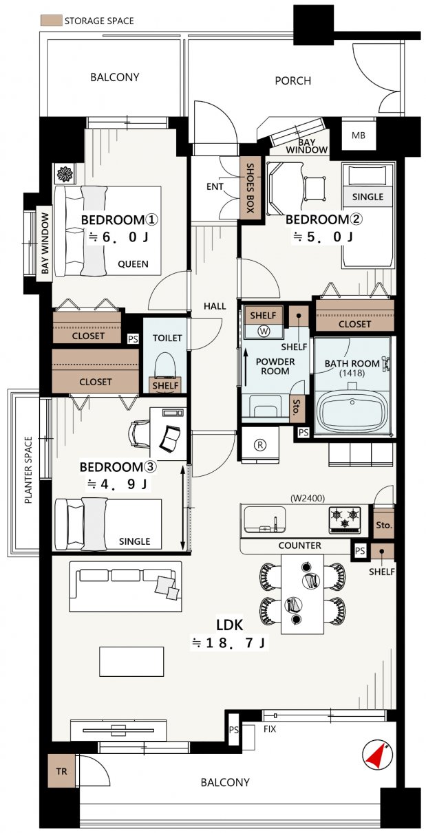 | 専有面積 | 76.76㎡ | バルコニー面積 | 14.53㎡ |