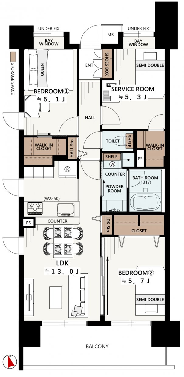 | 専有面積 | 68.10㎡ | バルコニー面積 | 11.80㎡ |