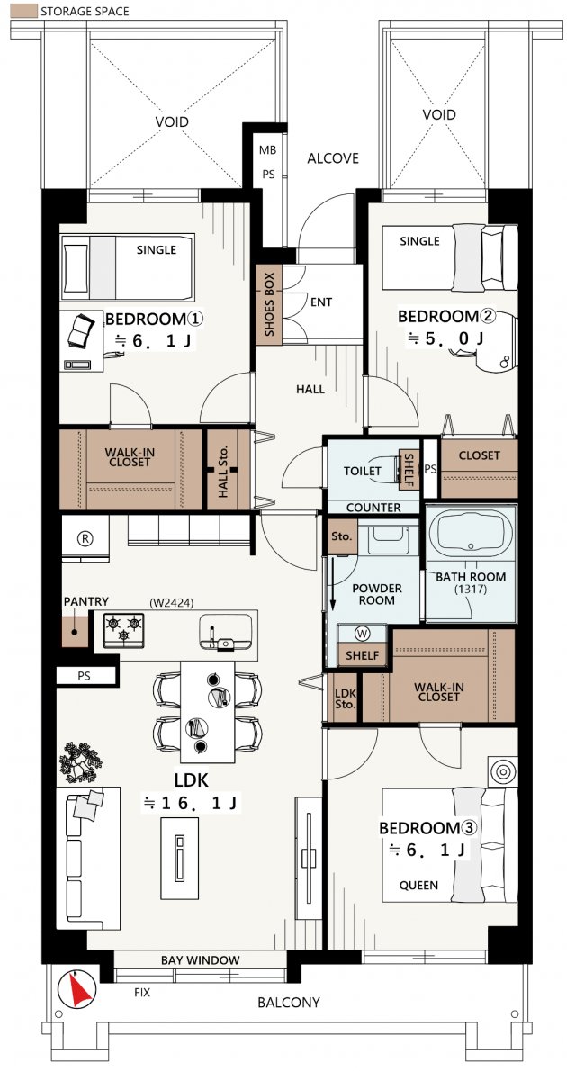 WIC2つ新設×16帖超LDK×各洋室5帖以上