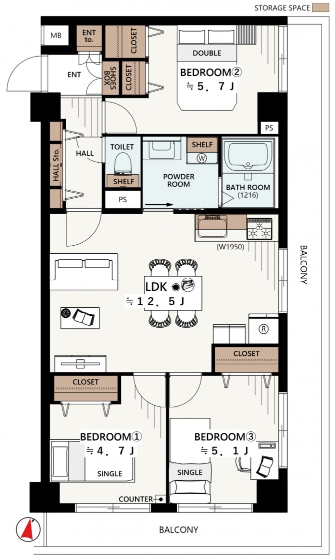 | 専有面積 | 63.80㎡ | バルコニー面積 | 18.00㎡ |