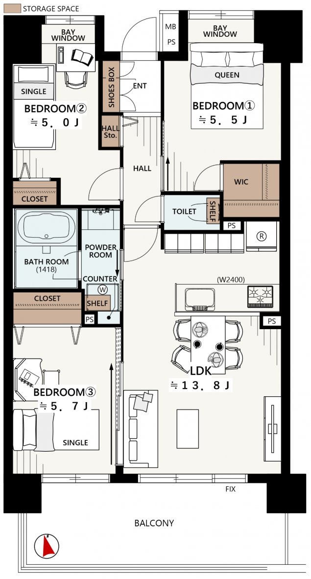 | 間取 | 3LDK | 建物構造 | SRC造 13階建 5階部分 |