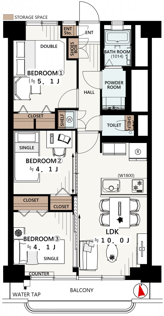 | 専有面積 | 55.00㎡ | バルコニー面積 | 6.73㎡ |